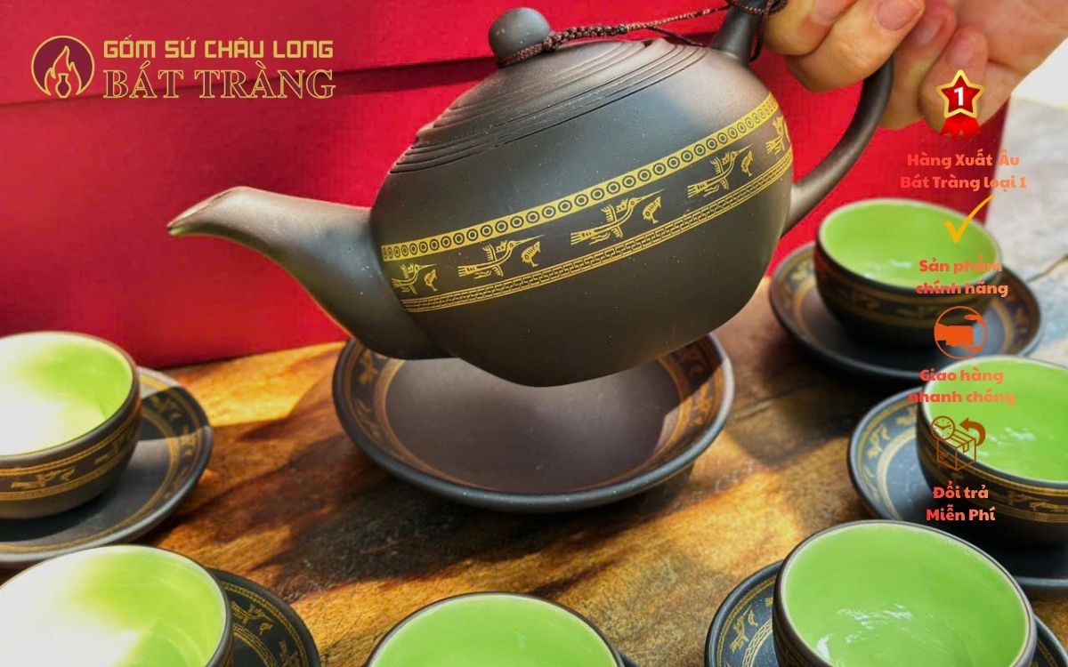Bộ Ấm Trà Quà Tặng Hoa Văn Ánh Kim – In Logo Theo Yêu Cầu