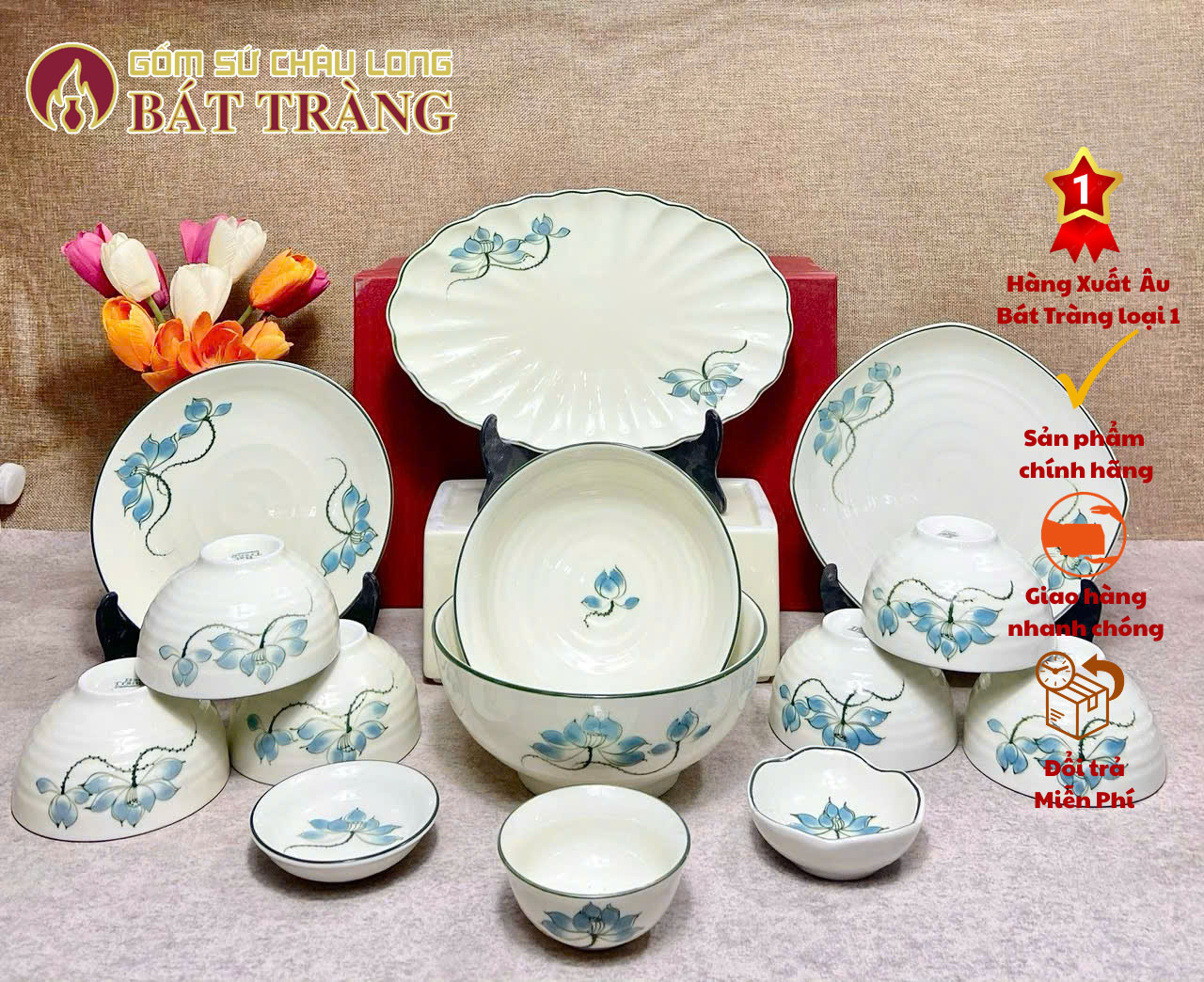 Bộ Bát Quà Tặng Từ 11 đến 23 Món Bằng Sứ Cao Cấp